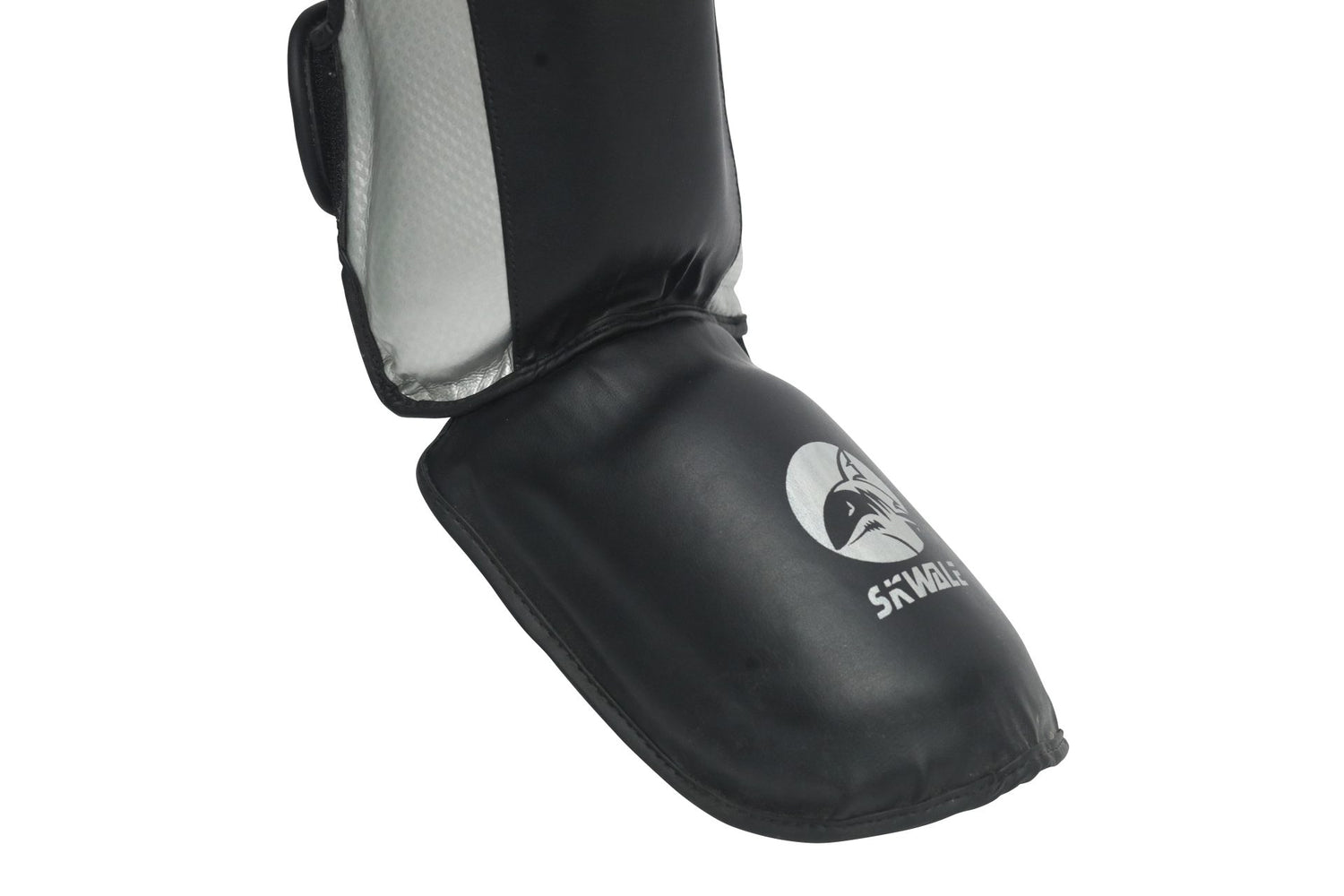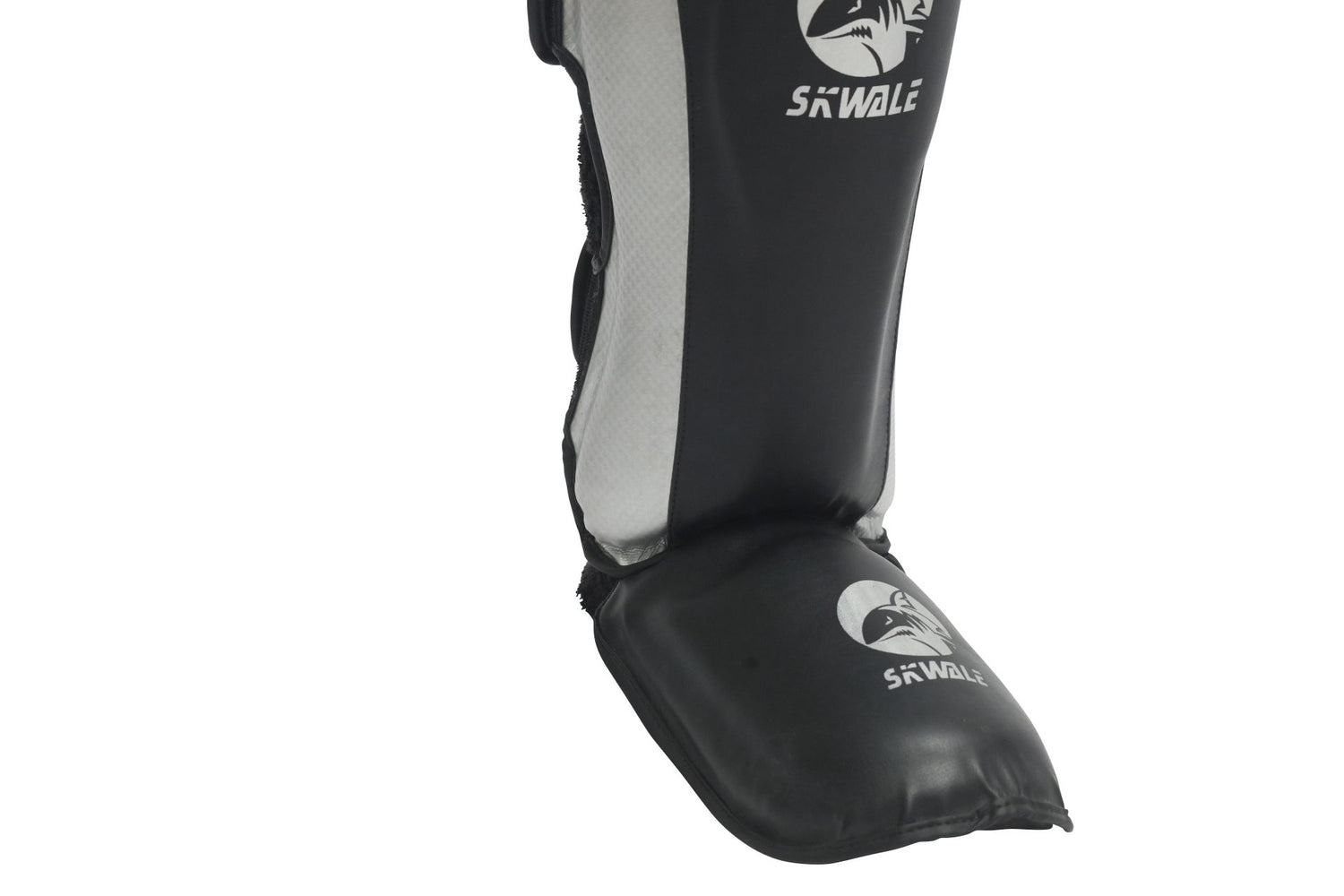 Tous les mouvements sans frottement - c'est la promesse des protège-tibias Skwale Uncharted, pour le MMA, l'entraînement Muay Thai et les combats sur le ring. Robustes, durables et disponibles en plusieurs tailles, ils offrent une mobilité maximale associée à une protection optimale. Ces protège-tibias noirs ergonomiques sont fabriqués en polyuréthane de 0,8 mm d'épaisseur et remplis de mousse AVE (EVA). Ils épousent parfaitement le mollet et disposent chacun de trois bandes élastiques pour assurer un ajustement parfait sans compromettre le confort. Les deux sangles supérieures ont des fermetures Velcro, tandis que la sangle inférieure doit s'enrouler autour du pied pour protéger le cou-de-pied. Le résultat : les coups durs que vous frappez sur les pads, les sacs de frappe et les adversaires sont tout aussi amortis que ceux que vous parez. Le velcro permet également de mettre et de retirer les protège-tibias en quelques secondes.